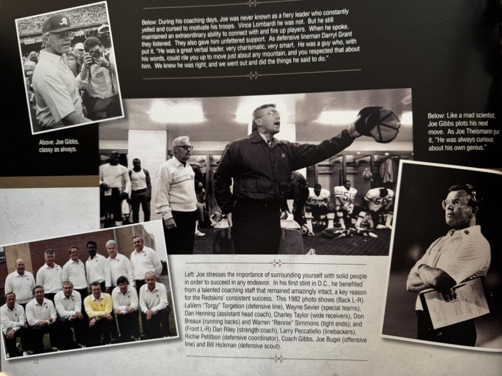 That meant elevating his game a few notches. He studied harder than ever, going deep into his playbook for anything that would outwit his opponents. He looked for any edge. He also made sure his Washington Redskin players understood what they needed to do and how to get it done, and he readied them so they wouldn’t beat themselves through turnovers, penalties and other mental errors.