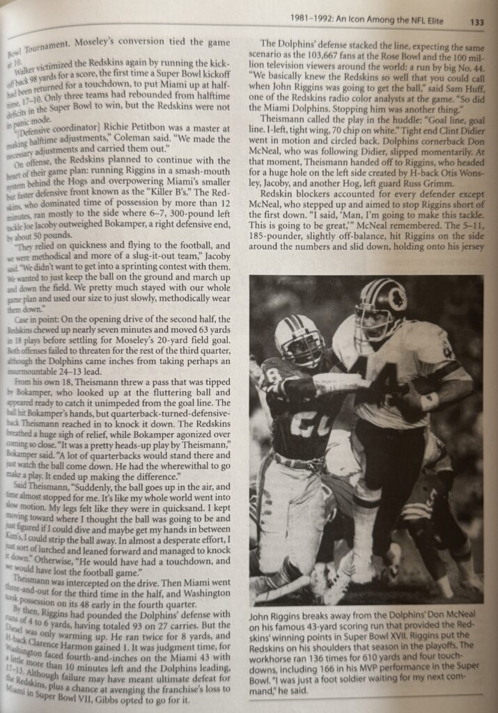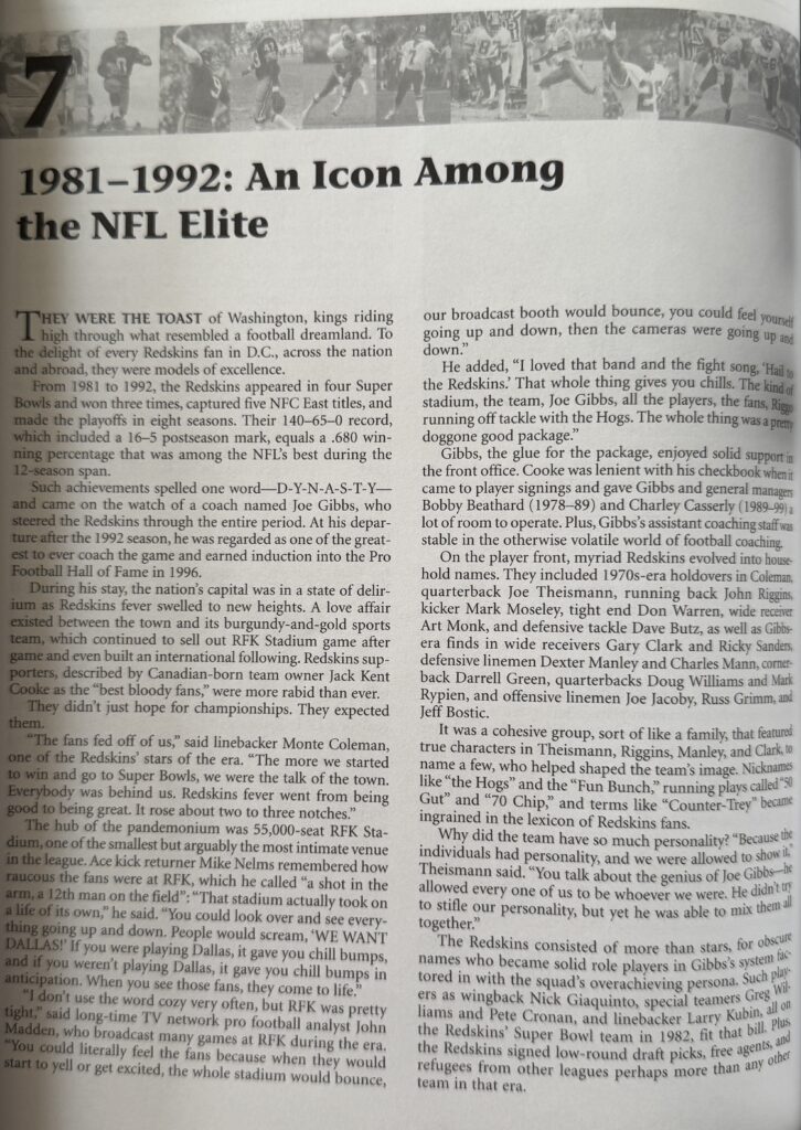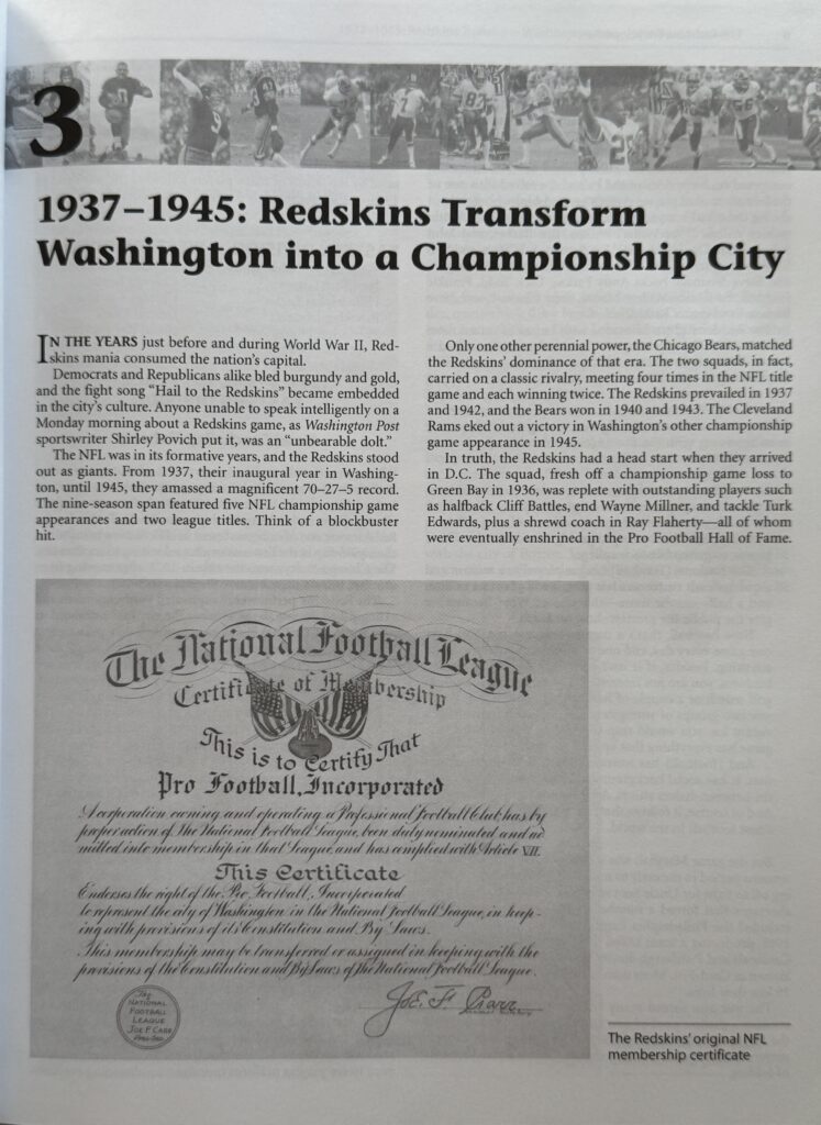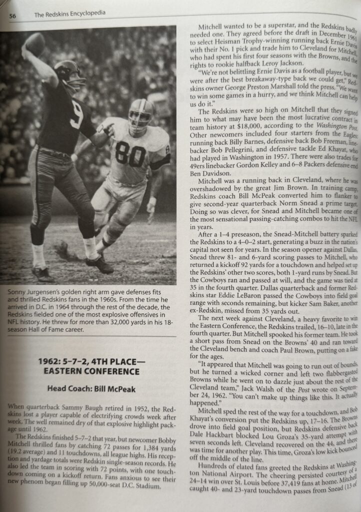 The Redskins Encyclopedia (Publication Date: September 2007) is the most comprehensive history of the storied football team, with all 75 seasons of the franchise covered in, well, encyclopedic detail. From George Preston Marshall’s desire to launch a team in the 1920s to the current roster,